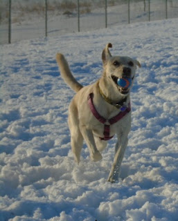 Crystal continues to LOVE to catch snow balls. I gotta admit... she's pretty good at it.. and boy can she jump!! BOING!!!!